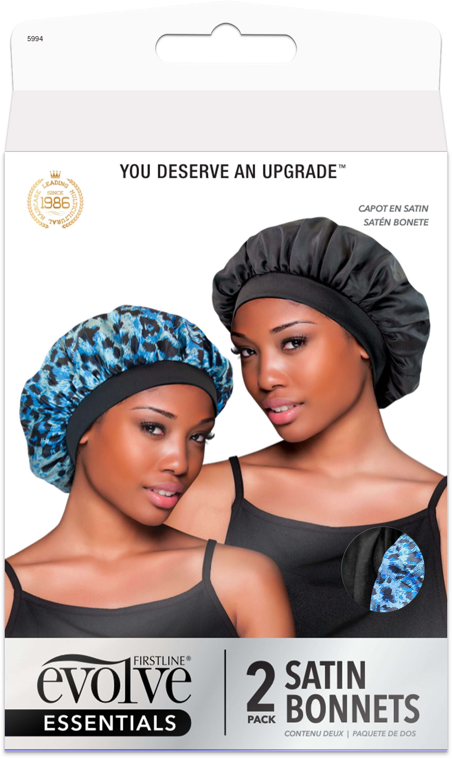Step into a realm where your nighttime routine becomes a luxurious ritual. The 2-Pack Satin Bonnets in captivating Blue Leopard and sleek Black are here to revolutionize the way you protect your hair while you dream.