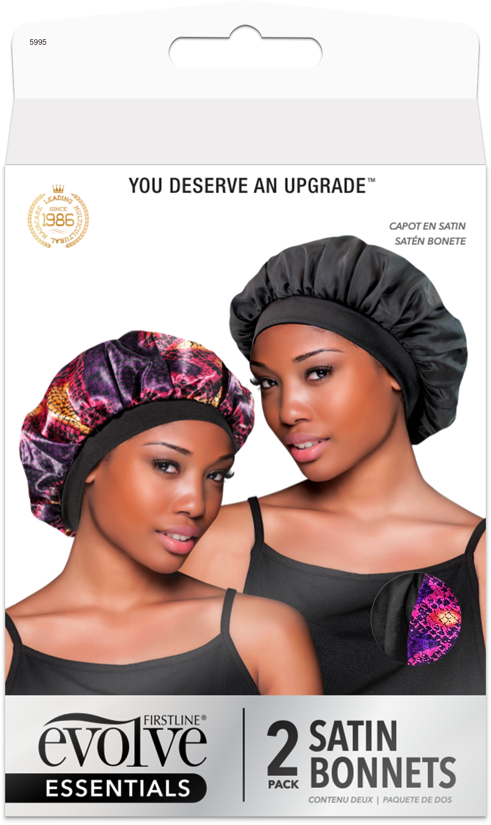 2-Pack Satin Bonnets Purple Snakeskin, Black 5995